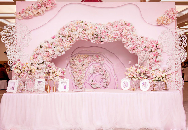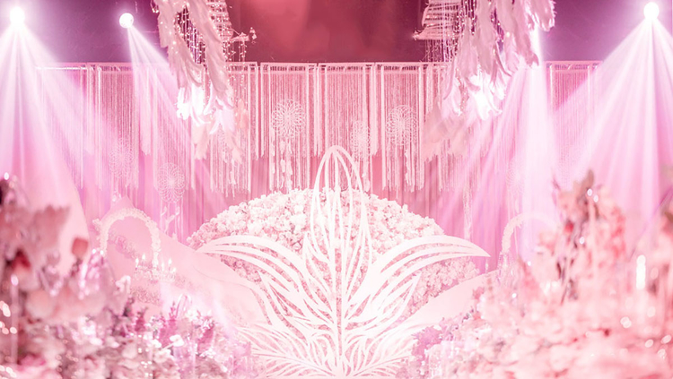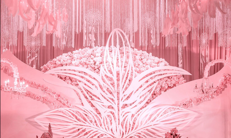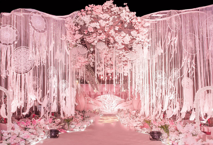 取一份优雅 捻一瓣花香 执一世情长 置于花屿 眸中带蜜 便是芳华 --------------------- 人生海海 每个人都是一座岛屿 我们扬帆起航 遇见了你 为你摘满星辰 粉嫩的世界里利用水晶等材质进行点缀 赋予视觉上更多的可能性 线条的搭配在曲中寻求和谐突破 搭配在简单的结构上 配比适量自然造型的花艺与整体进行呼应